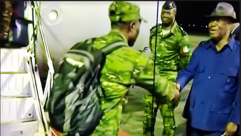 Le chef de l’Etat, Alassane Ouattara, a accueilli ce samedi 7 janvier 2023 ces militaires à l’aéroport Félix Houphouët-Boigny d’Abidjan, en présence du vice-président, des membres du gouvernement et des familles des soldats.L’avion transportant ces 46 militaires, un appareil de l’armée de l’air, a atterri sur le tarmac à 23h43 (GMT, heure locale). Le président Ouattara, le drapeau ivoirien en main, a salué chacun de ces soldats qui foulaient le sol de leur patrie, après près de six mois dans les geôles à Bamako.